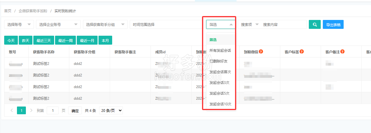 3.【新增】获客助手统计数据会话筛选支持按会话次数筛选。