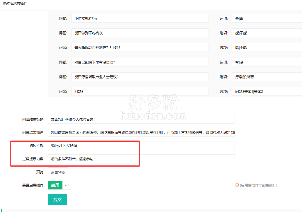 3.【新增】插件24问答插件支持选项拦截设置。