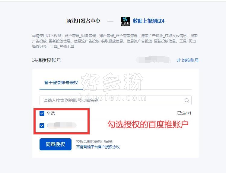 1.添加百度推广账号,下面会有相关参数获取位置说明