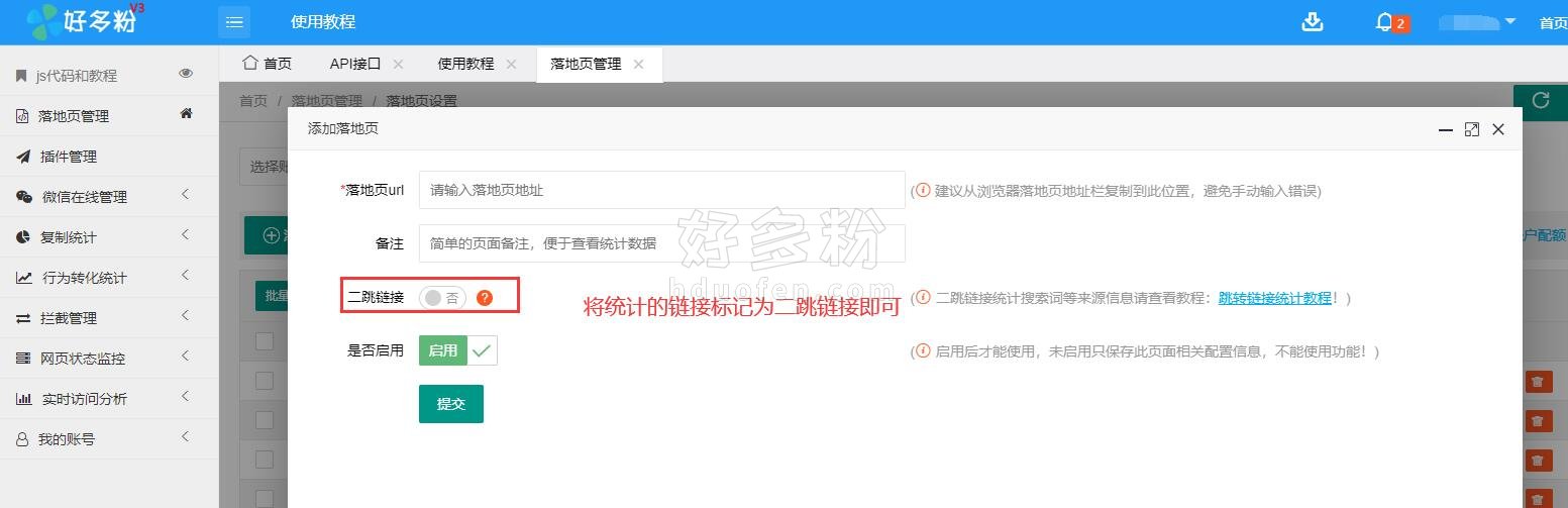 好多粉系统已支持二次跳转链接搜索词统计,而且只需要像普通的统计工具一样添加上好多粉的统计代码即可.