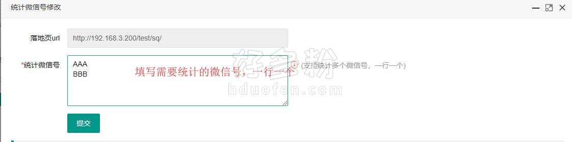 第二步:在落地页统计管理添加需要复制统计的微信号